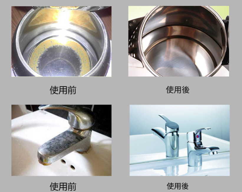 有效清潔:清潔劑可有效去除各種表面的水垢和其他礦物質沉積物,包括水壺、咖啡機和浴室裝置